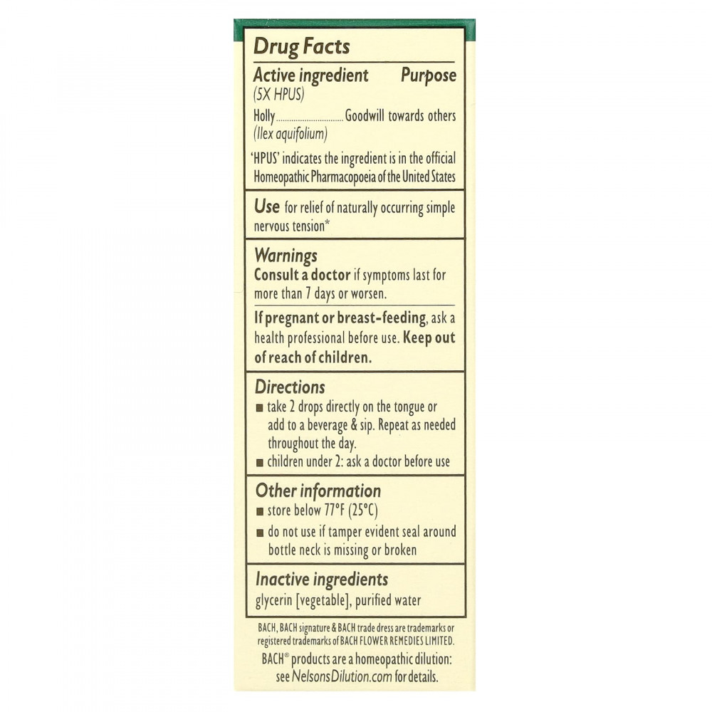 Bach, Original Flower Remedies, Холли, 20 мл (0,7 жидк. унц.)