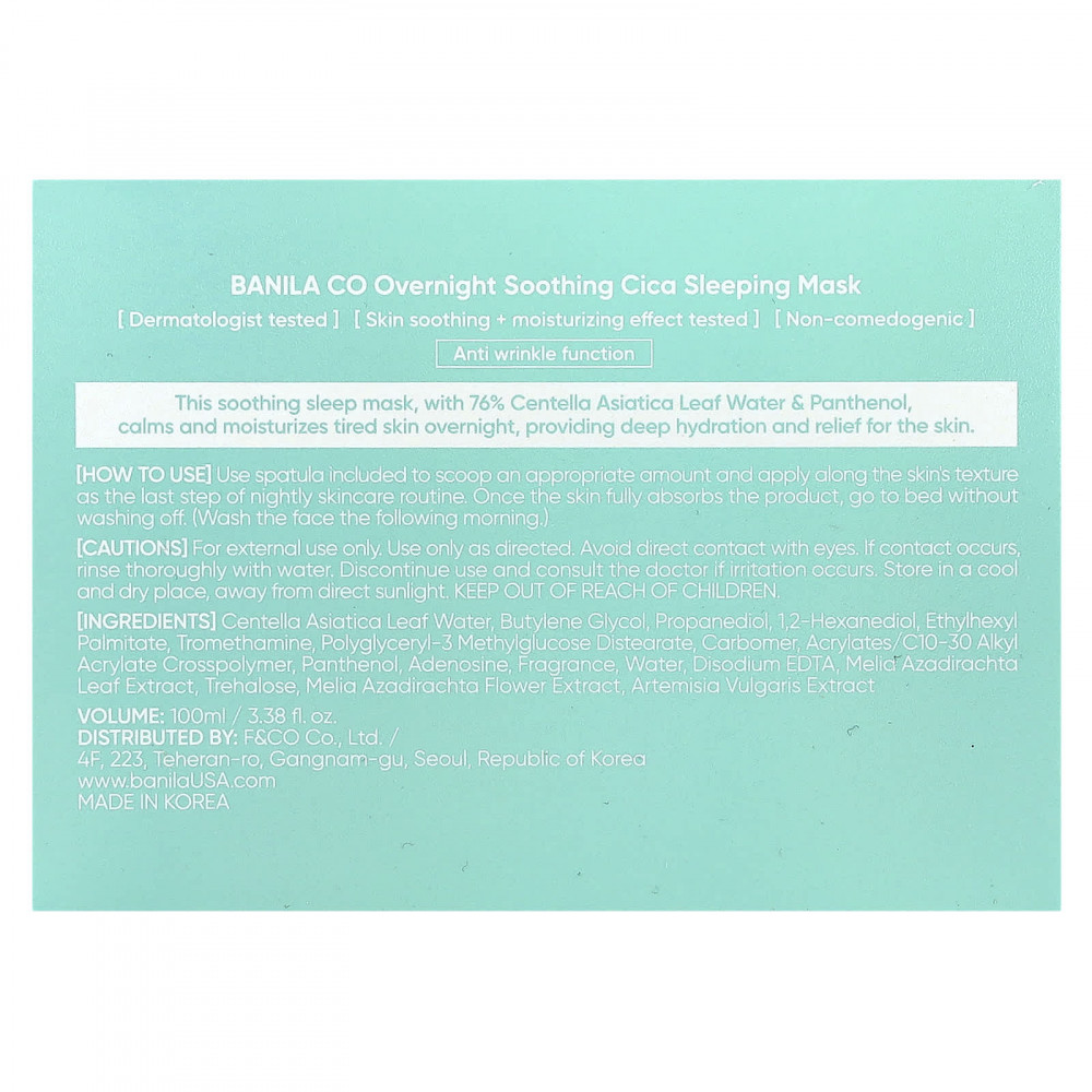 Эта успокаивающая маска для сна с 76% водой из листьев центеллы азиатской и пантенолом успокаивает и увлажняет уставшую кожу в течение ночи, обеспечивая глубокое увлажнение и облегчение для нее.