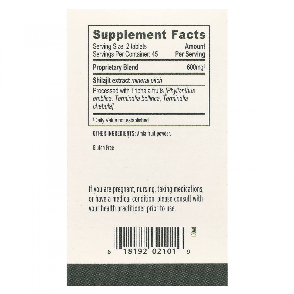 | Запатентованная смесь Минеральная смола с экстрактом мумие Обработано с использованием плодов трифалы [Phyllanthus emblica, Terminalia bellirica, Terminalia chebula] | 600 мг | † |