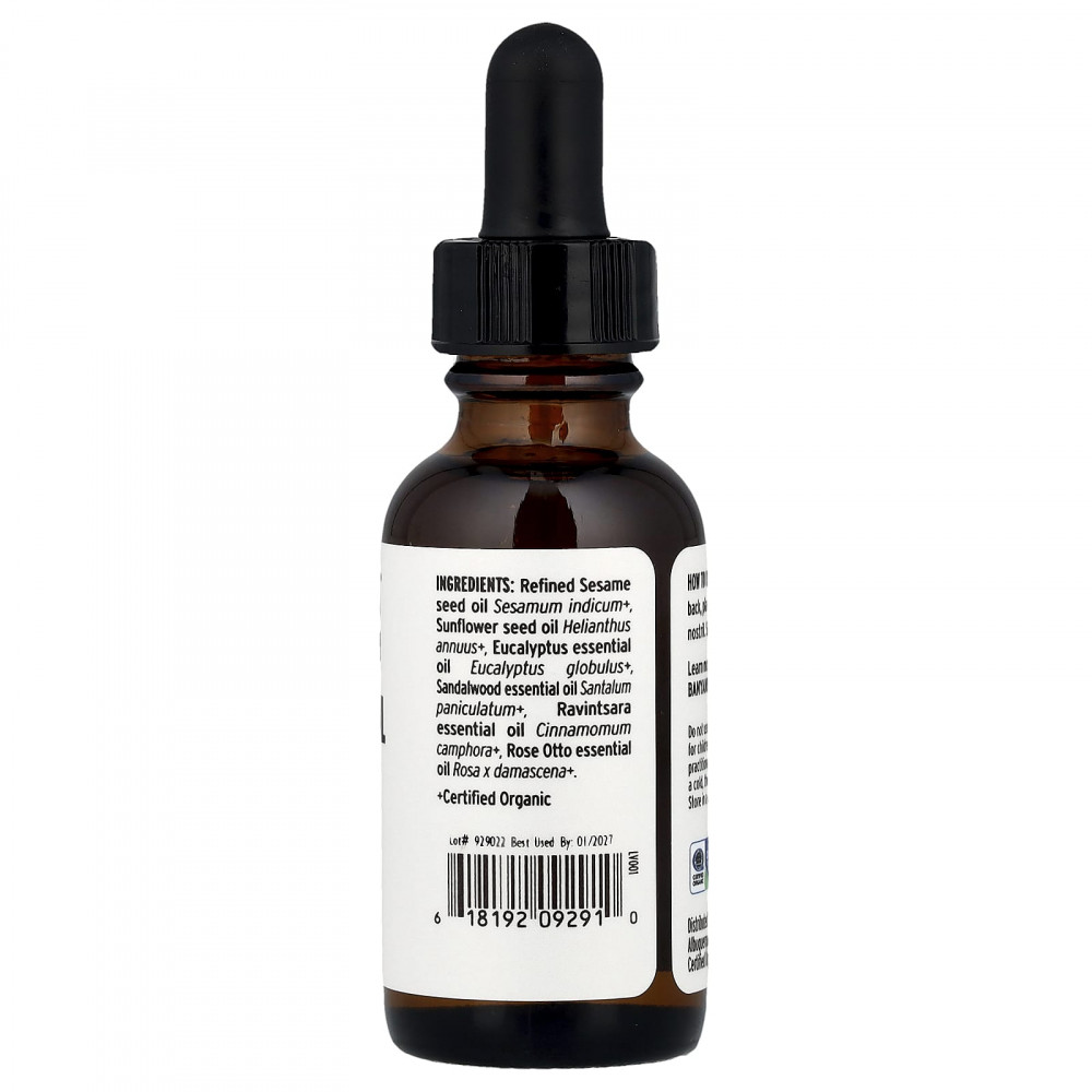 Рафинированное кунжутное масло Sesamum indicum +, подсолнечное масло Helianthus annuus +, эфирное масло эвкалипта, эфирное масло сандала (Santalum paniculatum) + эфирное масло равинцары (Cinnamomum camphora), эфирное масло розы отто Rosa x damascena +.