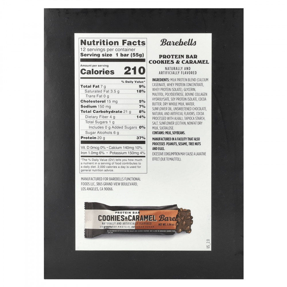 Barebells Cookies and Caramel содержит сердцевину со вкусом печенья и шоколада, а также слегка подсоленную карамель, покрытую шелковистым молочным шоколадом и посыпанную чипсами.