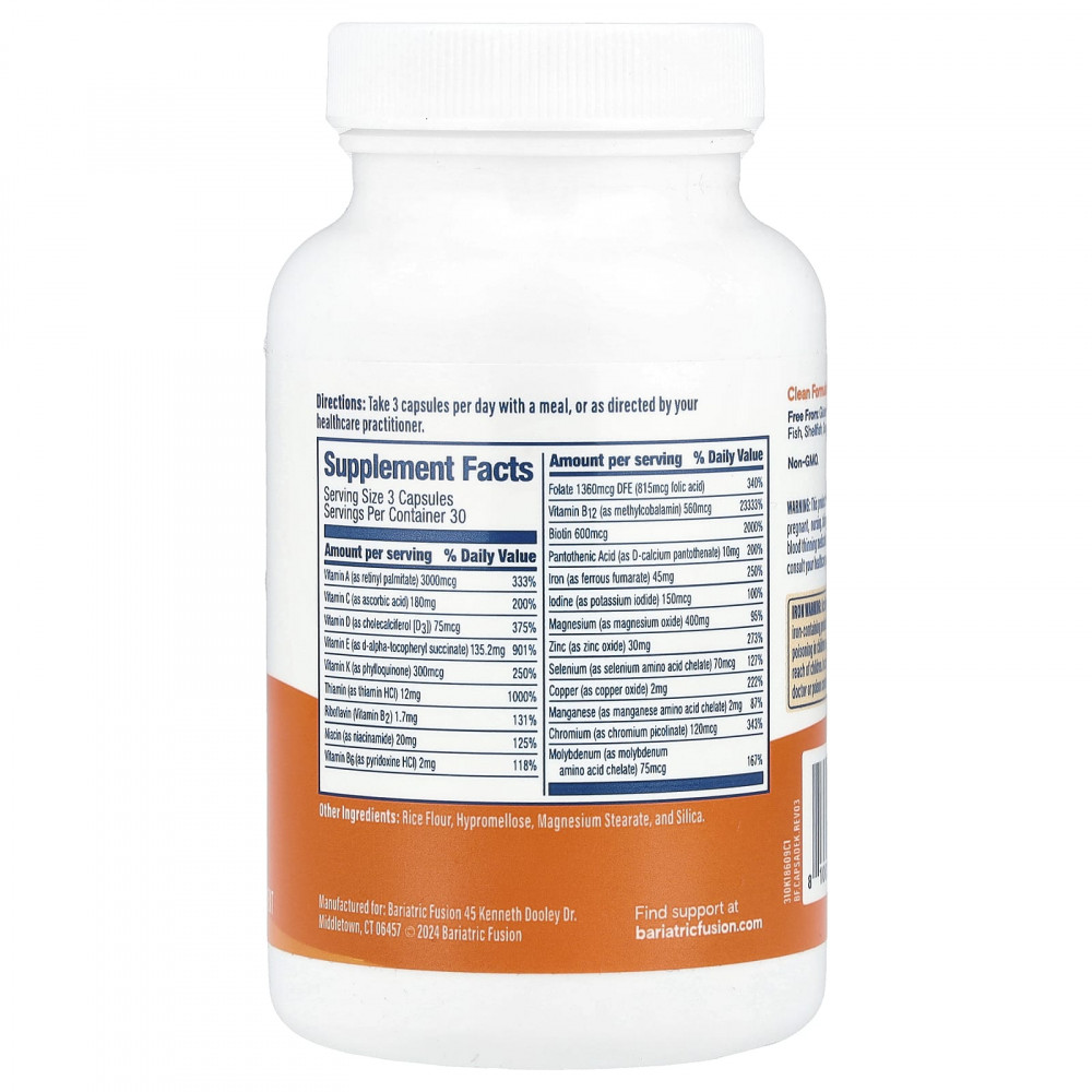 Бариатрические мультивитамины ADEK в капсулах с 45 мг железа - это бариатрические мультивитамины с высокими дозами жирорастворимых витаминов для приема 3 в день, предназначенные для удовлетворения ваших ежедневных потребностей в питании после бариатрической операции.