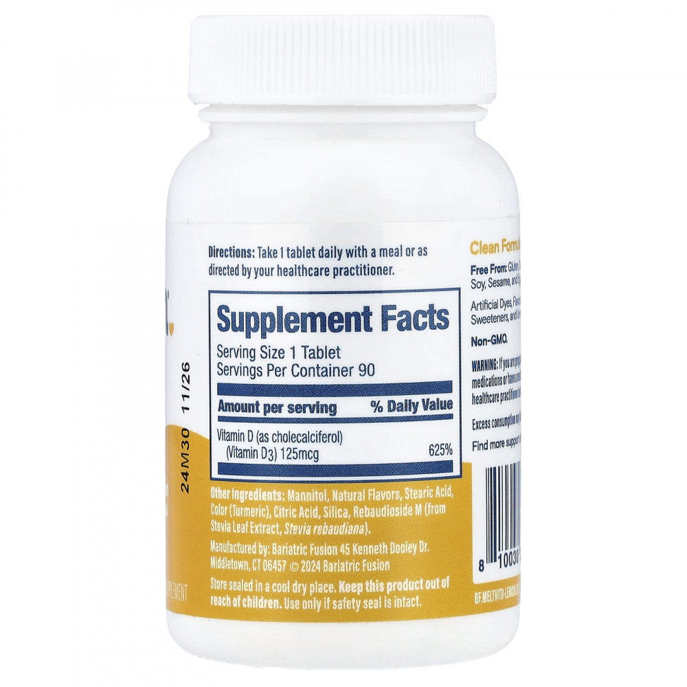 Quick Melt с витамином D — это пищевая добавка с великолепным вкусом для приема один раз в день, которая быстро растворяется на языке. Она обеспечивает легкое глотание и 125 мкг (5000 МЕ) витамина D3 для здоровья костей и усвоения кальция.