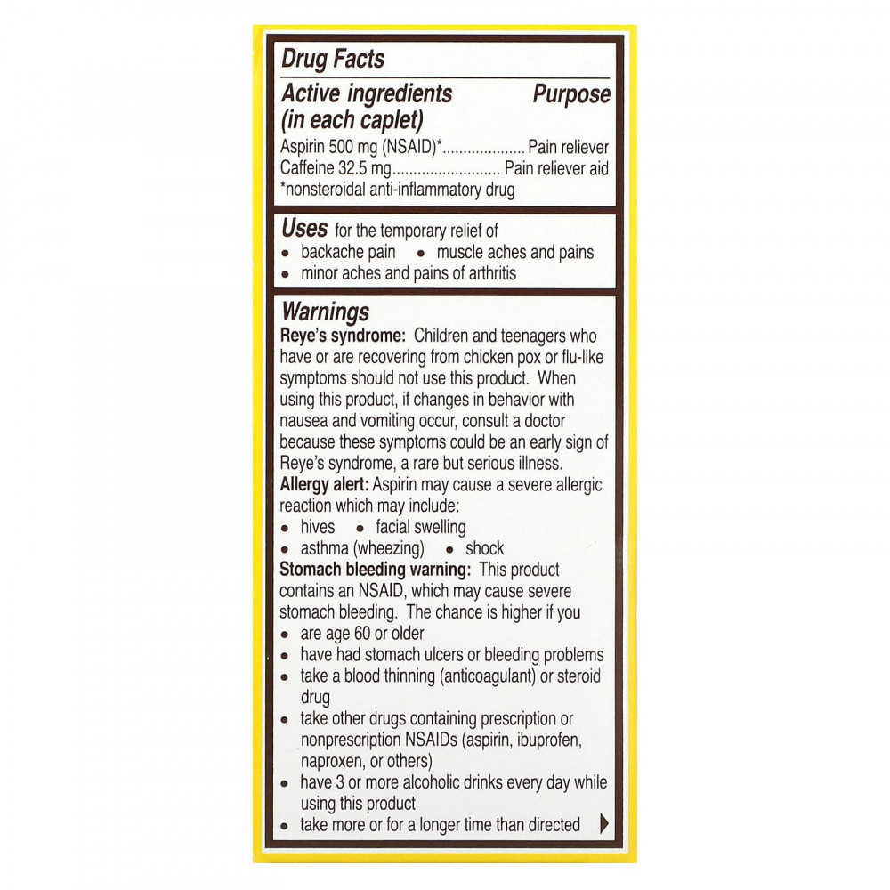 | Аспирин 500 мг (НПВП) * Кофеин 32,5 мг | Болеутоляющее Болеутоляющее |