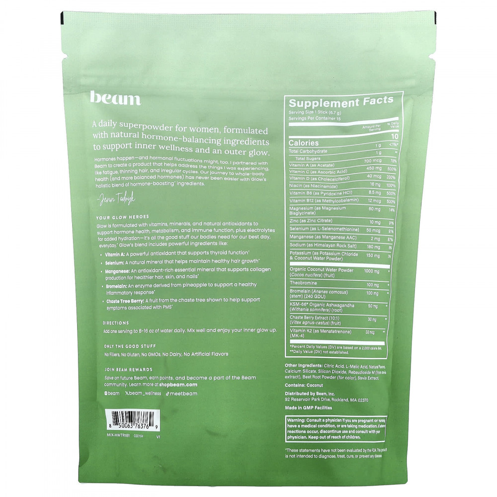 Гормоны меняются, а также гормональные перепады. Я сотрудничала с Beam, чтобы создать продукт, который помогает бороться с такими проблемами, как усталость, истончение волос и нерегулярный цикл. Наш путь к здоровью всего организма (и более сбалансированному уровню гормонов) еще никогда не был таким простым благодаря комплексной смеси ингредиентов, стимулирующих гормональный баланс от Glow.