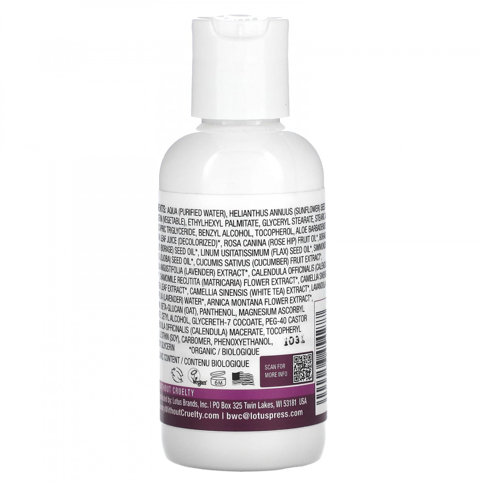 Очищенная вода, подсолнечное масло (Helianthus annuus)*, глицерин (растительный), этилгексил пальмитат, глицерил стеарат, стеариновая кислота, каприловый/каприновый триглицерид, бензиловый спирт, токоферол, сок листьев алоэ вера (Aloe barbadensis) (обесцвеченный)*, масло плодов шиповника *, масло семян бурачника (Borago officinalis)*, масло из семян льна (Linum usitatissimum)*, масло семян жожоба (Simmondsia chinensis)*, экстракт плодов огурца (Cucumis sativus)*, экстракт лаванды (Lavandula angustifolia)*, экстракт календулы (Calendula officinalis) *,, экстракт цветков ромашки (Chamomilla recutita)*, экстракт листьев зеленого чая (Camellia sinensis)*, экстракт белого чая (Camellia sinensis) *, вода лаванды (Lavandula angustifolia) *, экстракт цветков арники (Arnica montana)*, аллантоин, бета-глюкан (овес), пантенол, аскорбилфосфат магния, цетиловый спирт, глицерет-7 кокоат, ПЭГ-40 касторовое масло, календула лекарственная (Calendula officinalis), токоферилацетат, лецитин (из сои), карбомер, феноксиэтанол, этилгексилглицерин.