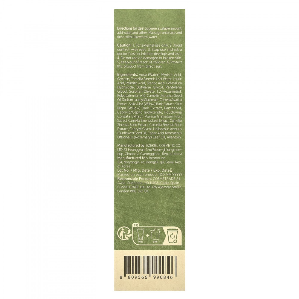 Очищающая пенка с зеленым чаем Benton - это увлажняющее очищающее средство, обогащенное зеленым чаем из района Босон, который является самым известным районом производства чая в Корее. Очищающее средство способствует чистому и здоровому очищению, не стягивая кожу, оставляя кожу свежей, увлажненной и оживленной.