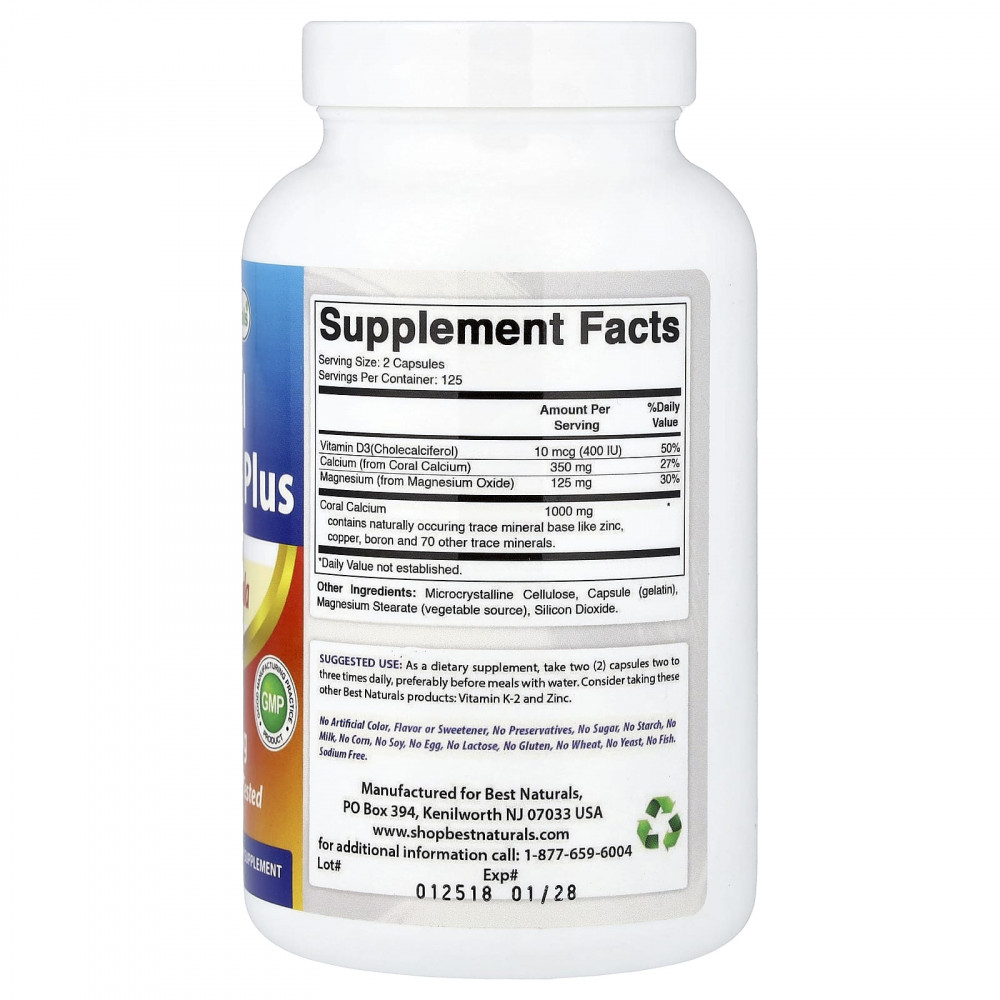 Коралловый кальций плюс от Best Naturals содержит щелочную форму кальция, которая может способствовать поддержанию здорового уровня pH в сыворотке. Кроме того, коралловый кальций содержит ряд природных микроэлементов, которые важны для здоровья костей и для оптимальной ферментативной активности. Коралловый кальций от Best Naturals экологически чистый: его собирают на Окинаве, Япония, из окаменелых (мертвых) кораллов, и они не наносят вреда живым кораллам. В состав этой добавки включены магний и витамин D, поскольку они играют важную роль в метаболизме костей. Некоторые исследовательские публикации указывают на то, что коралловый кальций может обеспечивать перечисленные ниже преимущества.