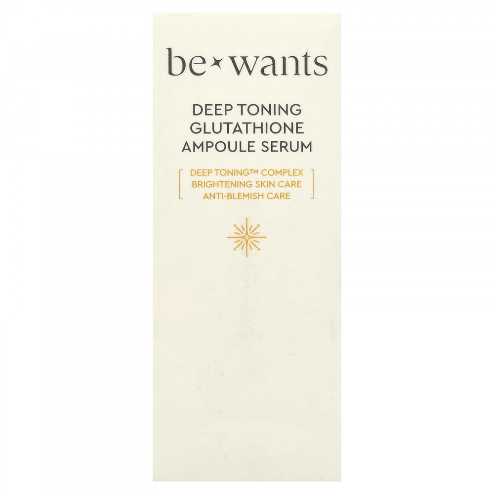 Ампульная сыворотка с глутатионом с комплексом Bewants 'Deep Toning ™ для более четкого тона кожи, более гладкой текстуры и лучшего сияния.
