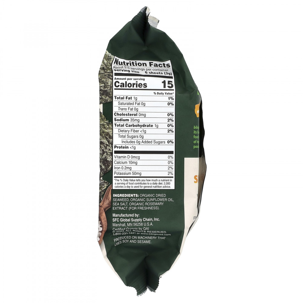 Органические сушеные водоросли, органическое подсолнечное масло, морская соль, органический экстракт розмарина (для свежести).