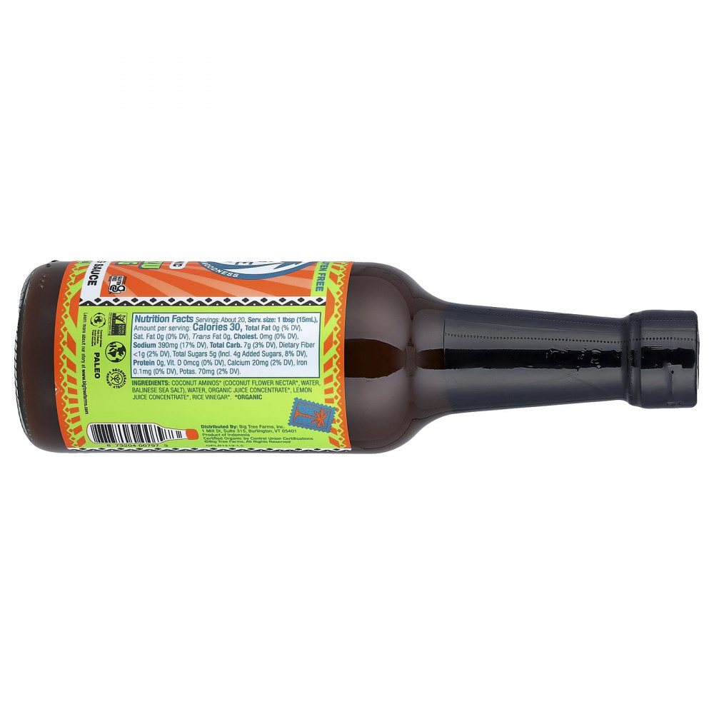 Coconut aminos* (нектар цветков кокоса*, вода, балинийская морская соль), вода, концентрат апельсинового сока*, концентрат лимонного сока*, рисовый уксус*.
