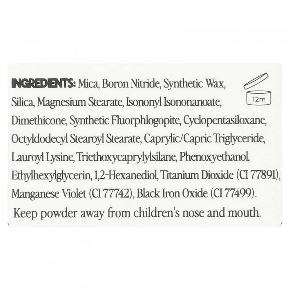 слюда, нитрид бора, синтетический воск, диоксид кремния, стеарат магния, изононил изононаноат, диметикон, синтетический фторфлогопит, циклопентасилоксан, октилдодецил стеароил стеарат, каприловый/каприновый триглицерид, лаурил лизин, триэтоксикаприлилсилан, феноксиэтанол, этилгексилглицерин, 1,2-гександиол, диоксид титана (CI 77891), краситель темно-фиолетовый (CI 77742), черный оксид железа (CI 77499).