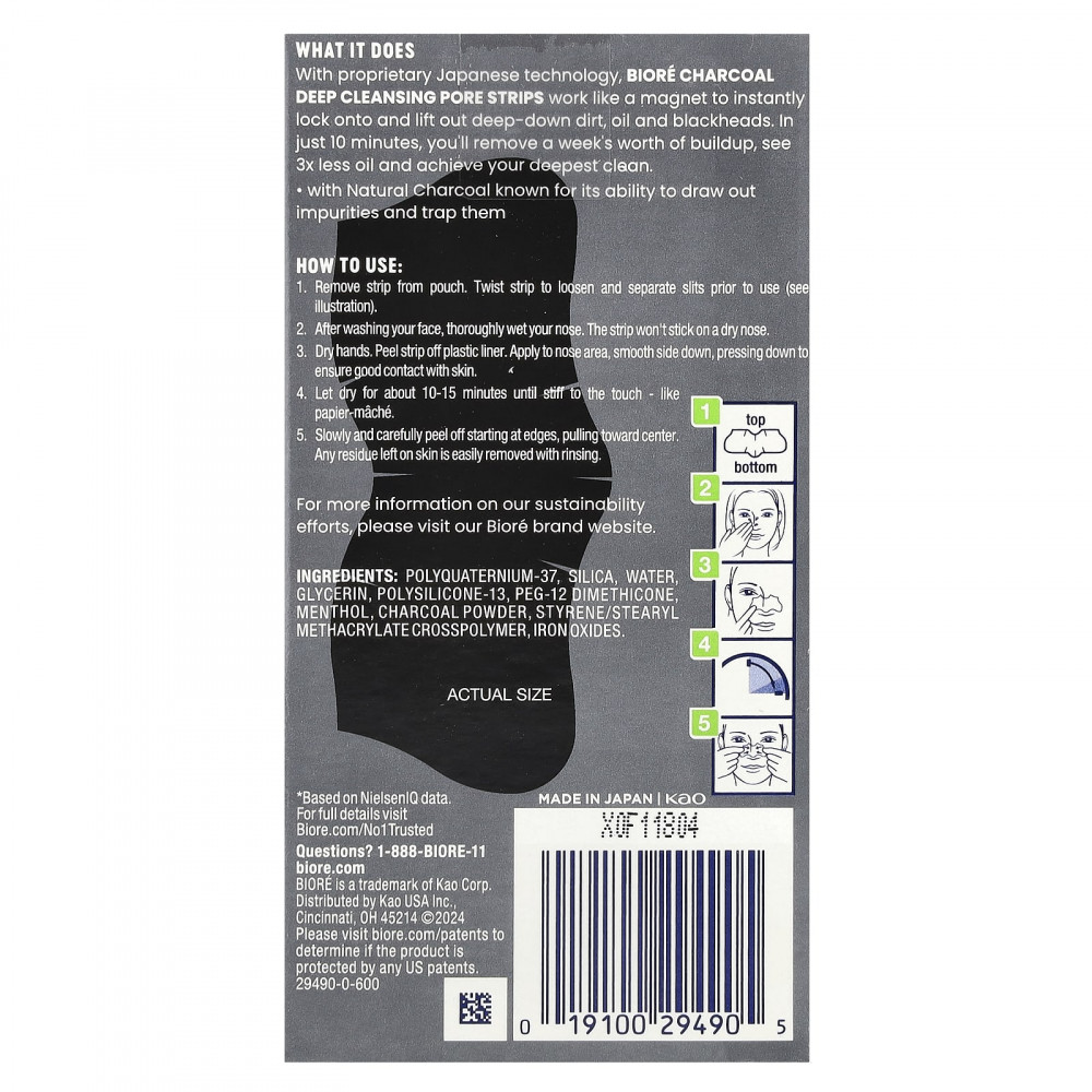 Благодаря запатентованной японской технологии полоски для глубокого очищения пор с древесным углем работают как магнит, мгновенно удерживая и удаляя глубокие загрязнения, жир и черные точки. Всего за 10 минут вы удалите накопившиеся за неделю налеты, увидите в 3 раза меньше масла и добьетесь максимальной чистоты.