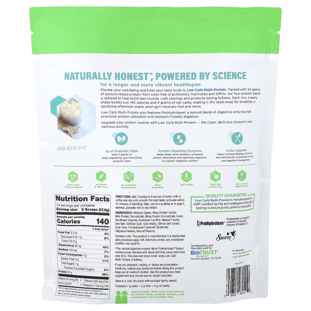 NATURALLY HONEST™ Создано на основе науки для более продолжительной и крепкой здоровья Улучшите самочувствие и побалуйте свои вкусовые рецепторы мультипротеиновым комплексом с низким содержанием углеводов. Наша смесь из четырех протеинов, содержащая 24 грамма протеина, выращенного на пастбищах от коров без антибиотиков, гормонов и ГМО, специально создана для наращивания сухой мышечной массы, обуздания голода и обеспечения длительного сытости. Каждый насыщенный сливочный коктейль содержит всего 140 калорий и 4 грамма чистых углеводов, что делает его идеальным завтраком, сытным полдником, энергией для восстановления после тренировки и многим другим.
