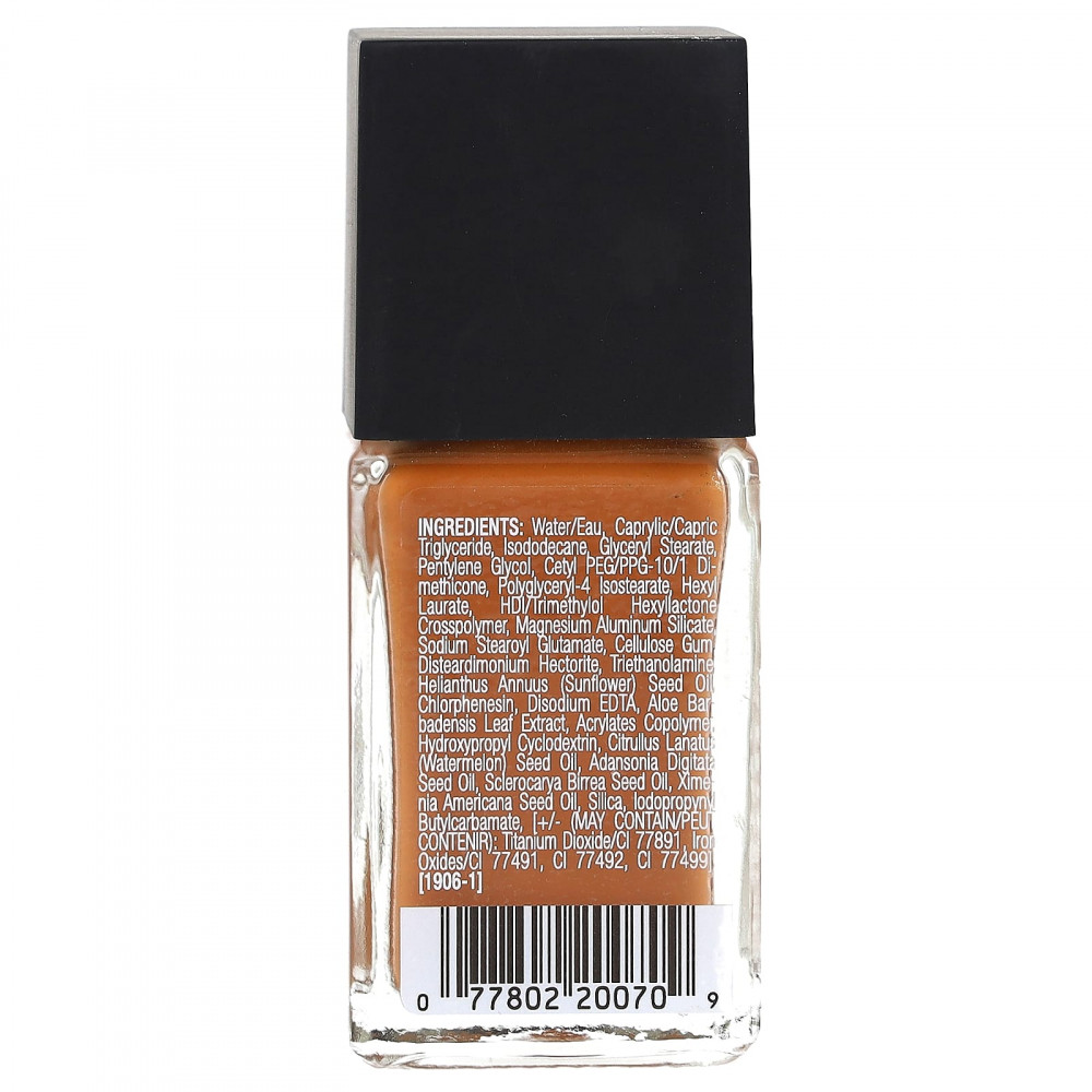 Вода, каприловый/каприновый триглицерид, изододекан, глицерил стеарат, пентилен гликоль, цетил ПЭГ/ППГ-10/1 диметикон, полиглицерил-4 изостеарат, гексиллаурат, гександиизоцианат/триметилол гексиллактона кроссполимер, алюмосиликат магния, натрия стеароил глутамат, целлюлозная камедь дистеардимония, гекторит, масло семян подсолнечника (Helianthus annuus), хлорфенезин, двунатриевая ЭДТК, экстракт листьев алоэ вера (Aloe barbadensis), сополимер акрилатов, гидроксипропил циклодекстрин, масло из семян арбуза (Citrullus lanatus), масло из семян баобаба (Adansonia digitata), масло семян марулы (Sclerocarya birrea), масло из семян ксимении американской (Ximenia americana), диоксид кремния, йодопропинил бутилкарбамат, может содержать диоксид титана (CI 77891), оксиды железа (CI 77491), CI 77492, CI 77499]. [1906-1]