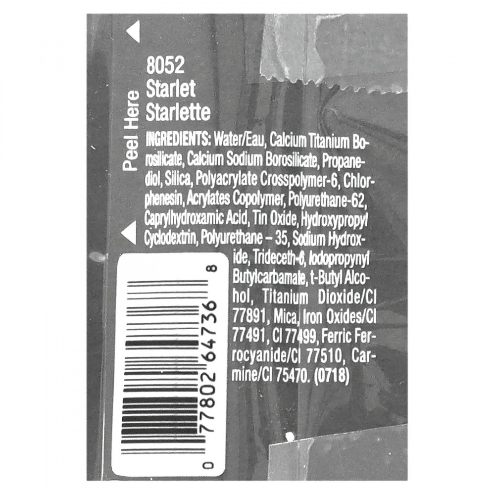 Вода (Eau), боросиликат кальция и титана, кальций натрий боросиликат, пропандиол, диоксид кремния, полиакрилата кроссполимер-6, хлорфенезин, сополимер акрилатов, полиуретан-62, каприлгидроксаминовая кислота, оксид олова, гидроксипропил циклодекстрин, полиуретан-35, гидроксид натрия, тридецет-6, йодопропинил бутилкарбамат, т-бутиловый спирт, диоксид титана (CI 77891), слюда, оксиды железа (CI 77491), CI 77499), берлинская глазурь/CI 77510, кармин (CI 75470).