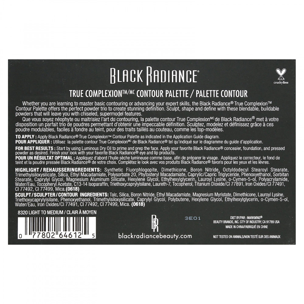 Нанесите палитру для контурирования Black Radiance® True Complexion™, как показано на инструкции по нанесению.