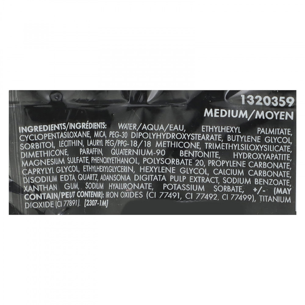 Вода (eau), этилгексил циклопентасилоксан, слюда, ПЭГ-30 диполигидроксистеарат, бутиленгликоль, пальмитат, сорбитол, лецитин, лаурил-ПЭГ / ППГ-18 / 18 метикон, триметилсилоксисиликат, диметикон, парафина, кватерниум-90 бентонит, гидроксиапатит, сульфат магния, феноксиэтанол, полисорбат 20, пропиленкарбонат, каприлилгликоль, этилгексилглицерин, гексиленгликоль, карбонат кальция, двунатриевая ЭДТК, кварц, экстракт мякоти баобаба (Adansonia digitata), бензоат натрия, ксантановая камедь, гиалуронат натрия, сорбат калия, (может содержать): оксиды железа (CI 77491, CI 77492, CI 77499), диоксид титана (CI 77891).