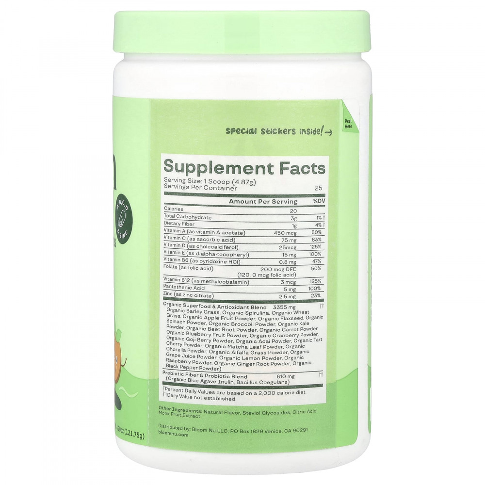 Самая популярная зелень от Bloom Nutrition теперь доступна и для детей! Содержит более 20 фруктов и овощей, необходимые мультивитамины, пребиотики и пробиотики - все в одной вкусной мерной ложке!