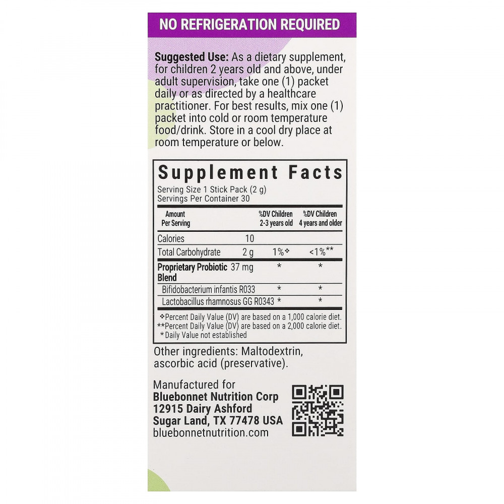 Пакетики с пробиотиком для детей от Bluebonnet содержат: