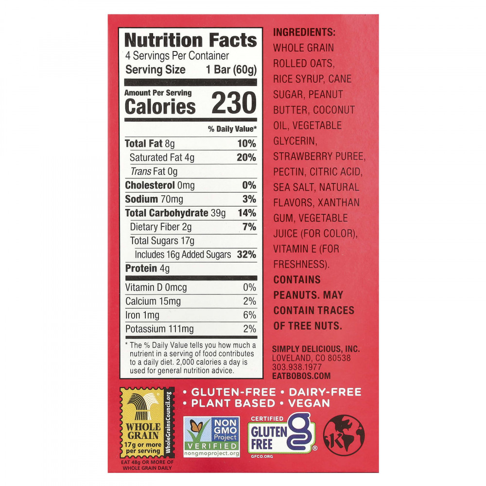 С 2003 года наша пекарня в Колорадо придумывает вкусные рецепты овсяных батончиков, используя полезные простые ингредиенты. Однажды мы подумали, а что, если мы заново представим себе традиционный сэндвич с арахисовой пастой и желе ?! Bobo's® поможет приготовить такой хлеб, который не будет запутываться и который легко взять с собой, а мы заменим этот хлеб полностью безглютеновой, питательной, овсяной корочкой с арахисовым маслом! Вуаля, родились PB & Js!