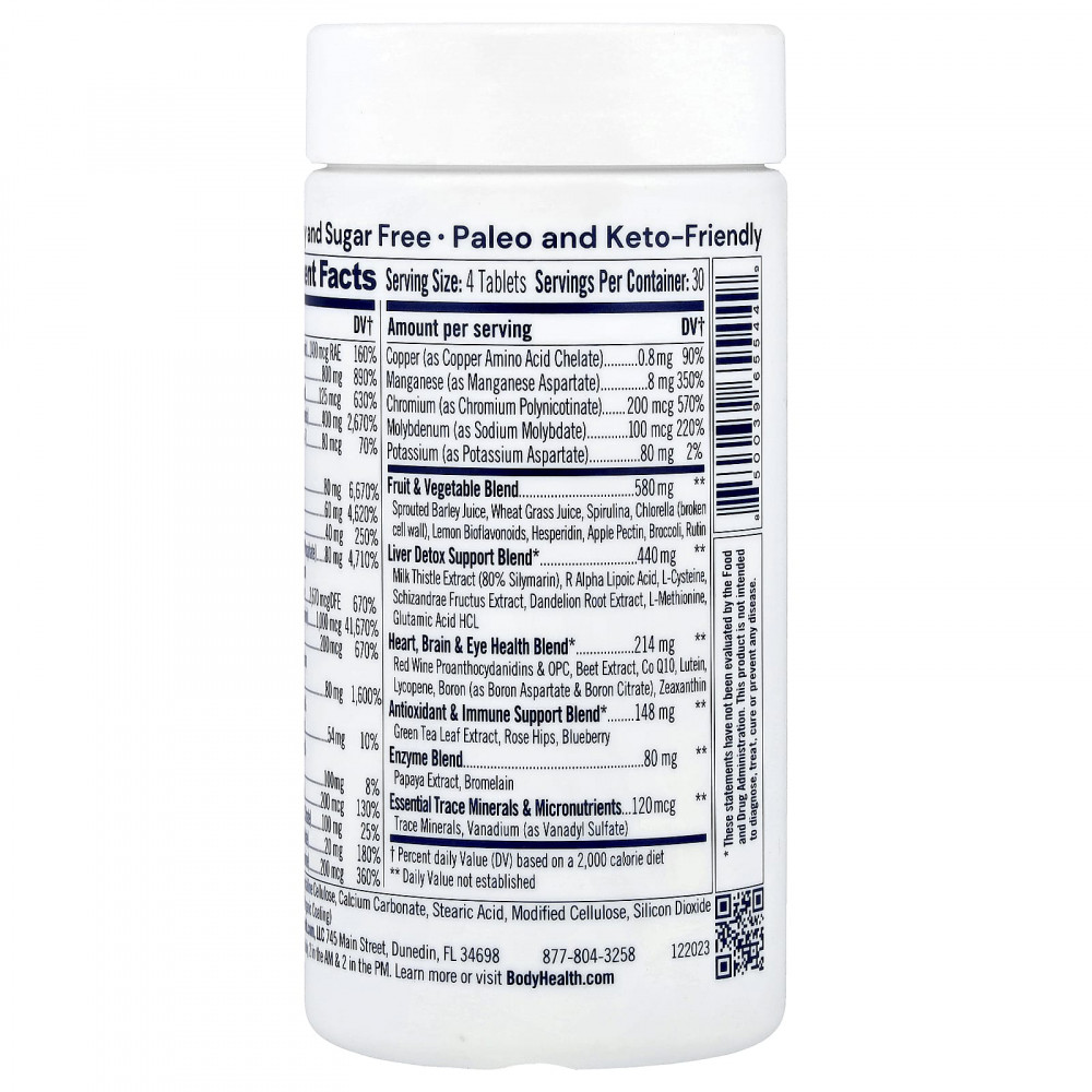 Включает поддержку печени, метилфолат, хелатные минералы, коэнзим q10, витамины k2 / d3, аминокислоты и цельные пищевые добавки в биодоступных формах.
