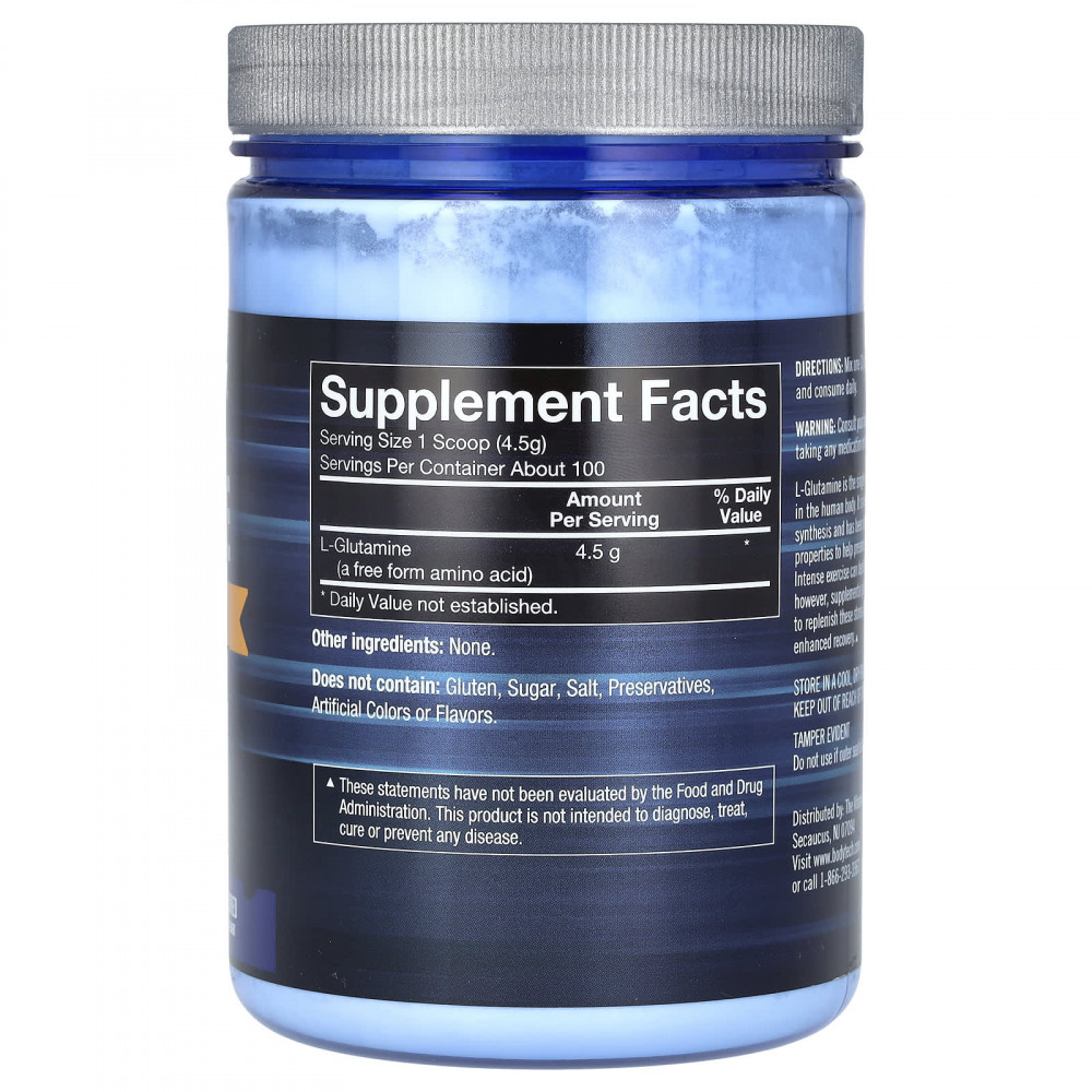 L-глютамин — самая распространенная аминокислота в организме человека. Он участвует в регулировании синтеза белка и, как было доказано, обладает антикатаболитическими свойствами, помогающими сохранить мышечную массу. Интенсивные упражнения могут истощить запасы глутамина, однако считается, что дополнительный прием глутамина восполняет эти запасы, обеспечивая ускоренное восстановление.