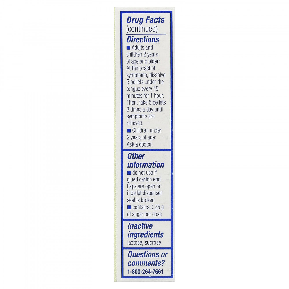 | Взрослым и детям 2 лет и старше: | при появлении симптомов рассасывать 5 гранул под языком каждые 15 минут в течение 1 часа. Затем принимать по 5 гранул 3 раза в день до облегчения симптомов. |