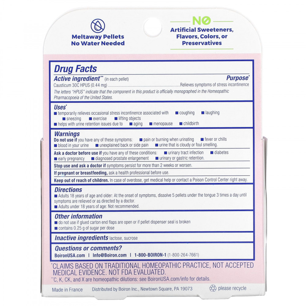 | Каустикум 30C HPUS (0,44 мг) | Снимает симптомы стрессового недержания мочи |