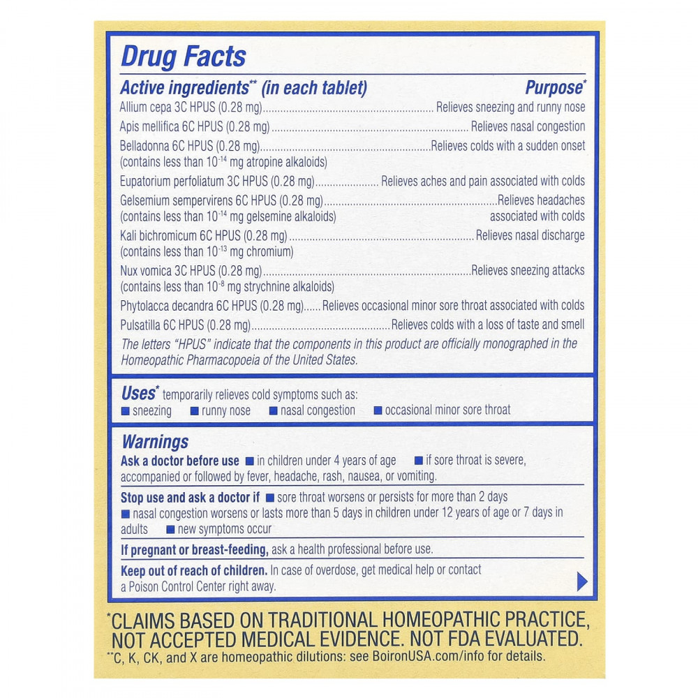 | Гельземиум вечнозелёный (Gelsemium sempervirens) 6C HPUS (0,28 мг) (содержит менее 10-14 мг алкалоидов гельсемина) | Снимает головные боли, связанные с простудой |