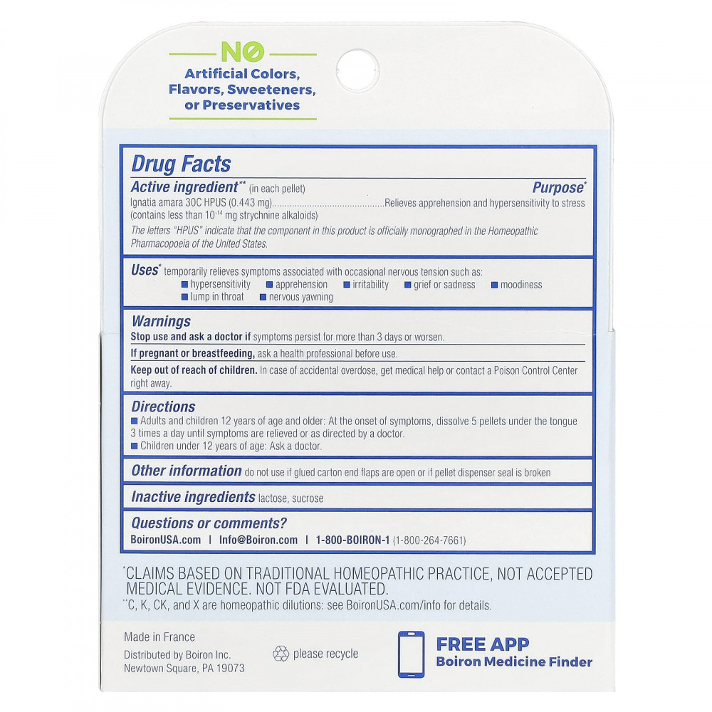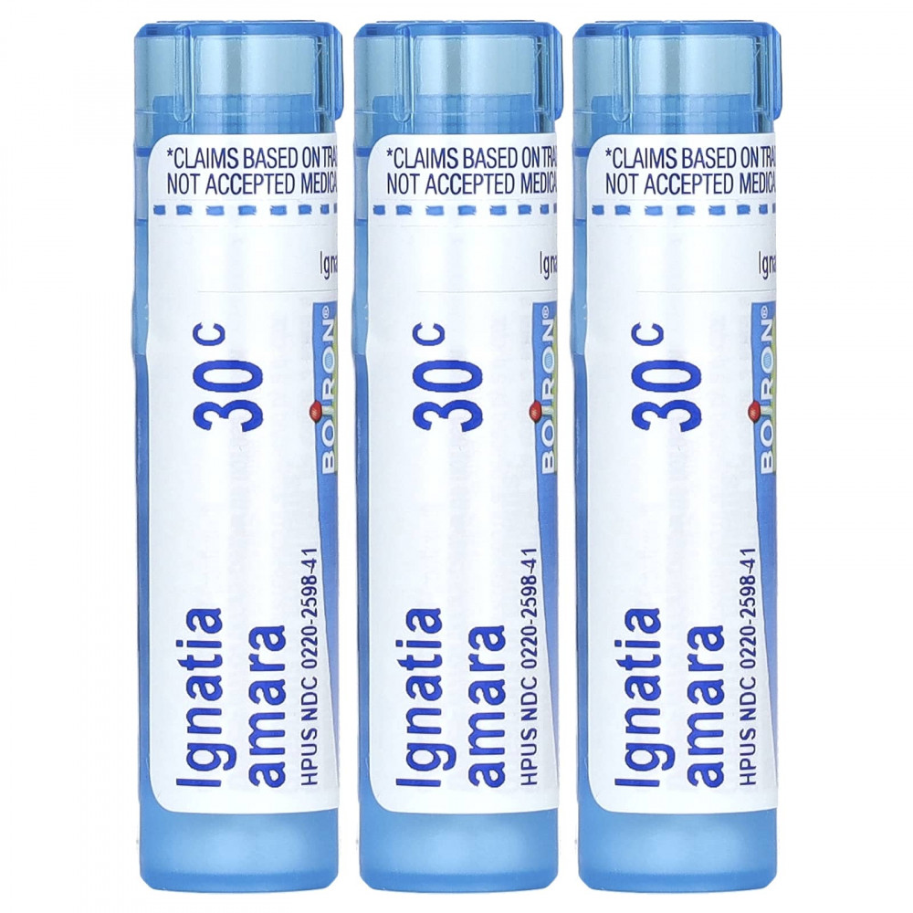 | Ignatia Amara 30C HPUS (0,443 мг) (содержит менее 10-14 мг стрихниновых алкалоидов) | Снимает беспокойство и повышенную чувствительность к стрессу |