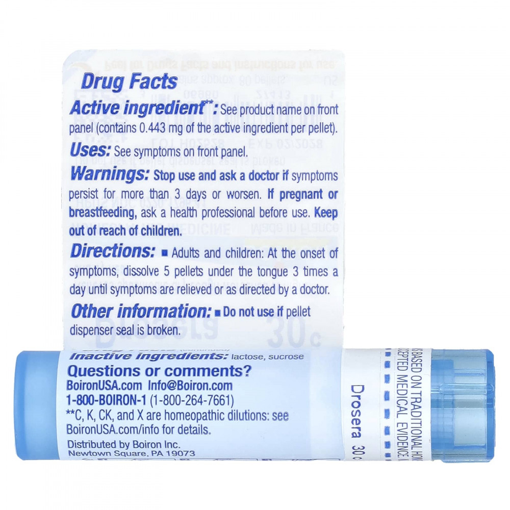 | Drosera, 30C (содержит 0,443 мг активного ингредиента на гранулу) |