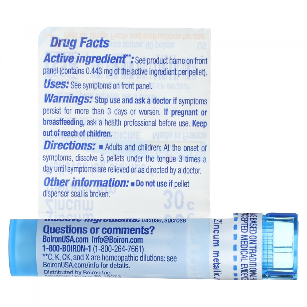 | Zincum Metallicum, 30C (содержит 0,443 мг активного ингредиента на гранулу) |