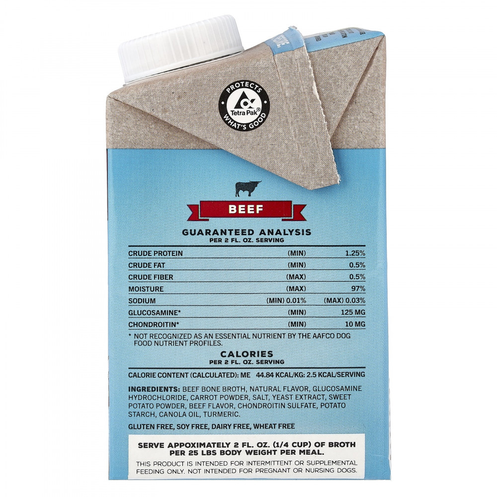 Рекомендации по кормлению взрослых: Подавать в качестве полезной ежедневной добавки (при желании теплым). Добавляйте в еду вашей собаки во время каждого приема пищи. Можно также употреблять в качестве питательного увлажняющего напитка. Давайте примерно 1/4 стакана бульона на 25 фунтов (25 фунтов) веса тела за один прием пищи. Регулируйте количество в соответствии с индивидуальными потребностями питомца.