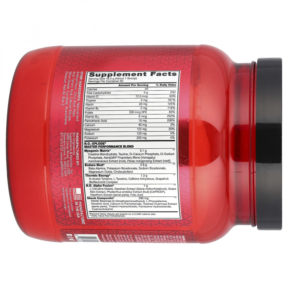Подарите своему организму энергию с помощью передовых ингредиентов, которые помогут вам избавиться от прежних ограничений. NO-Xplode® разработан на основе научных исследований для поддержки взрывной энергии, интенсивной концентрации, экстремального прокачивания, максимальной производительности и повышения выносливости во время тренировок.