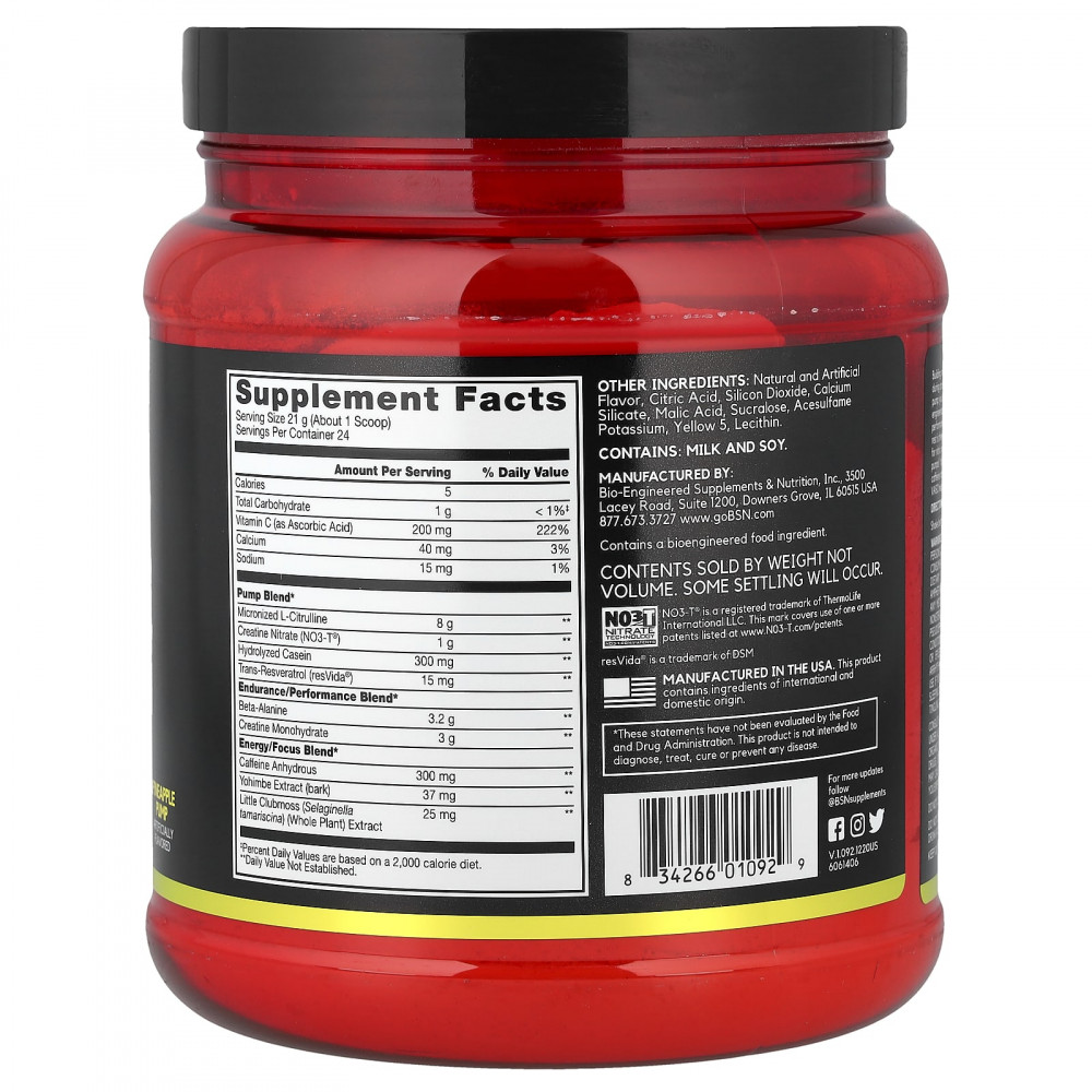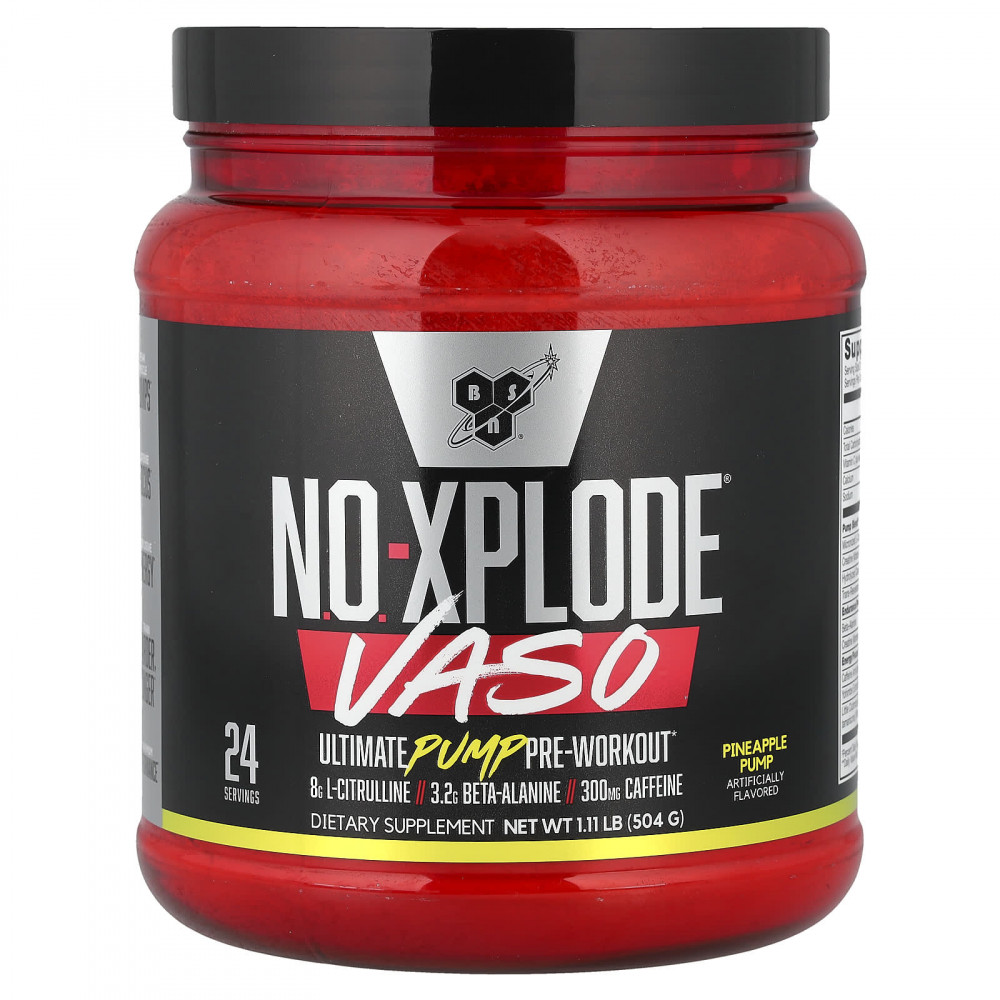 Для наращивания мышечной массы необходимо правильное питание и качественные тренировки. Кто не хочет эффективно прокачивать мышцы во время потрясающих тренировок? Многие предтренировочные добавки повышают уровень энергии и концентрации, но не обеспечивают необходимый уровень накачки. Благодаря NO-XPLODE VASO ваши поиски могут быть завершены! Комплекс NO-XPLODE VASO разработан специально, чтобы обеспечить настоящую накачку, а также повысить уровень энергии, выносливость, концентрацию и работоспособность мышц. Каждый раз вы будете получать именно то, что вам нужно! Что действительно отличает NO-XPLODE VASO от других добавок, так это расщепляющая способность, получаемая из 8 г цитруллина и 1 г нитрата креатина NO3-T®, поставляющих нитраты для прекурсоров оксида азота, а также 25 мг селагинеллы, гидролизованного казеина и ресвератрола. для прокачки следующего уровня! Кроме того, вы получаете 3,2 г бета-аланина для повышения выносливости, а также энергии и концентрации благодаря 300 мг кофеина и 37 мг экстракта йохимбе. Доступный со множеством восхитительных вкусов от BSN, NO-XPLODE VASO помогает добиться максимальных результатов на каждой тренировке, потому что ничто не работает лучше, чем NO-XPLODE VASO!