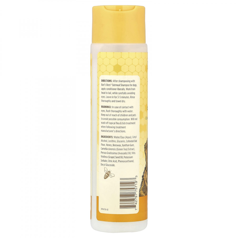 Овсяный кондиционер для собак Bees® от Burt's Bees® увлажняет шерсть вашей любимой собаки с помощью натуральных ингредиентов. Это полезное средство изготовлено из увлажняющей коллоидной овсяной муки, меда, придающего коже сияние, и питательного экстракта зеленого чая.