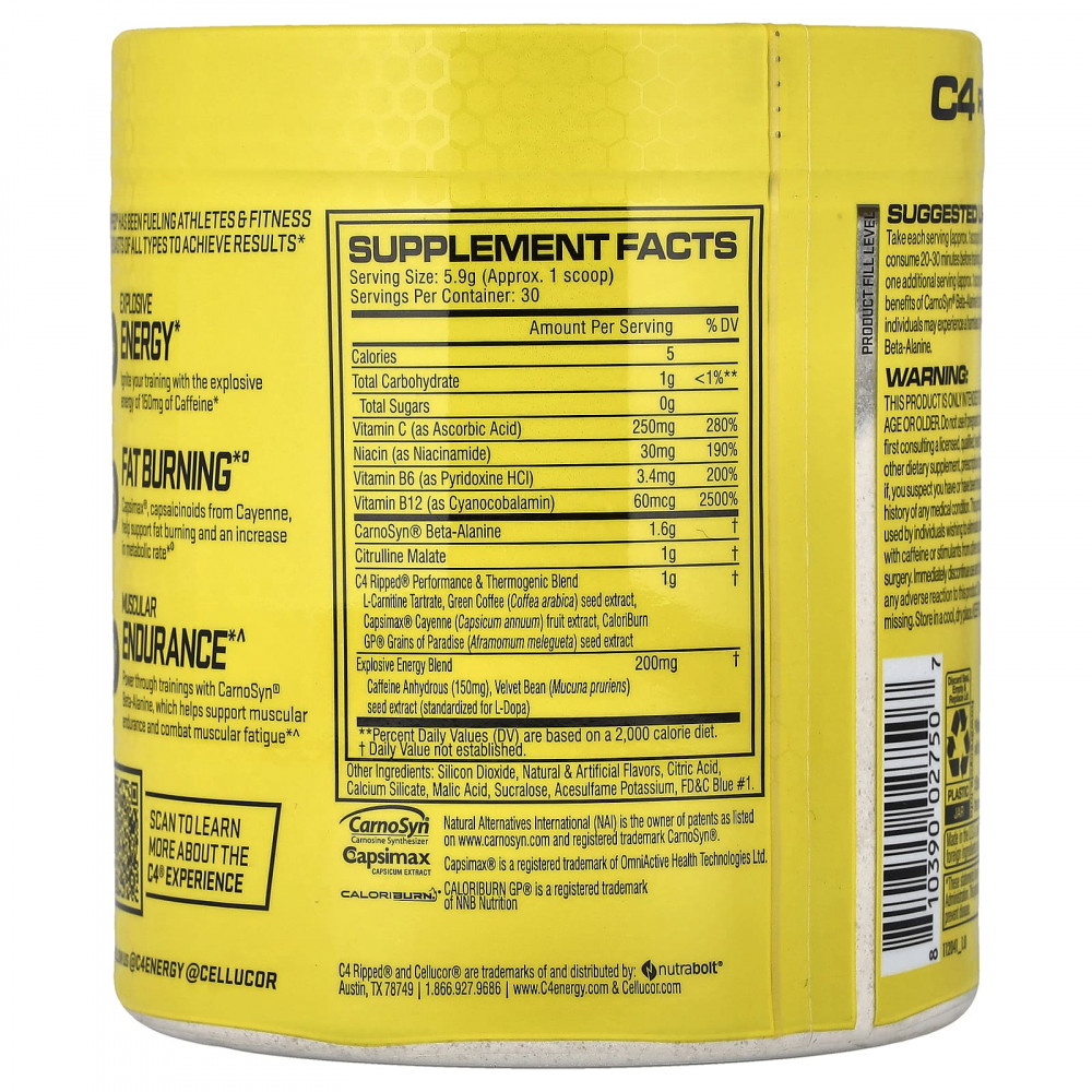 Принимайте каждую порцию (прибл. 1 мерную ложку) C4 Ripped® с 6 жидк. унция воды и выпейте за 20–30 минут до тренировки. После оценки переносимости примите одну дополнительную порцию (прибл. 1 мерную ложку) перед тренировкой.