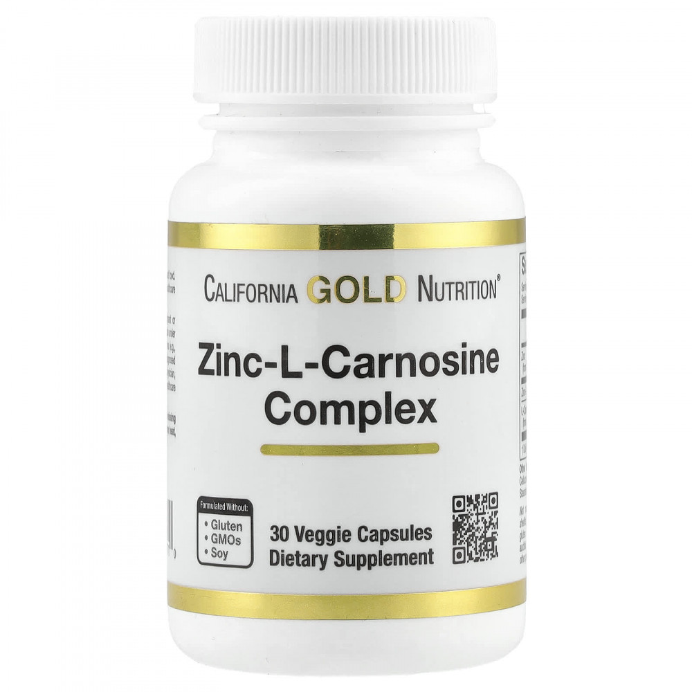Комплекс с цинком и L-карнозином от California Gold Nutrition содержит цинк-L-карнозин в растительных капсулах. Он подходит для вегетарианцев и веганов и не содержит глютена, ГМО и сои.