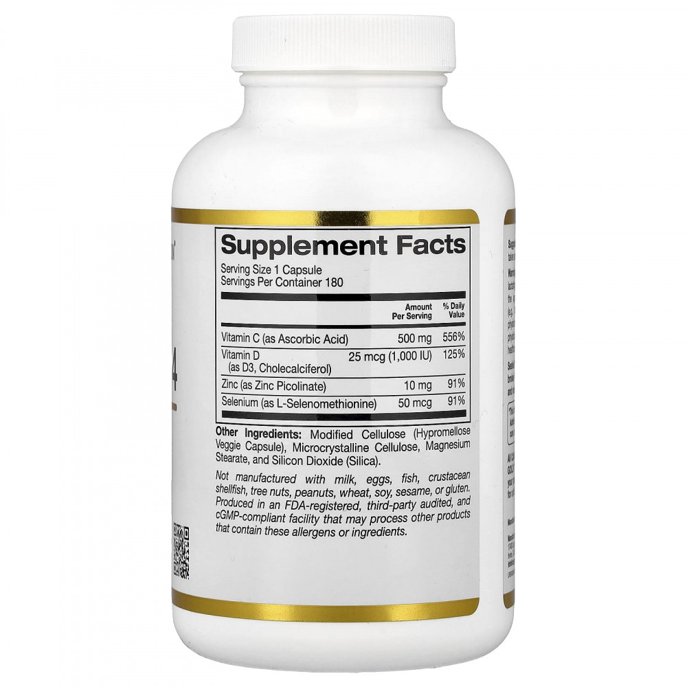 California Gold Nutrition®Defender 4в состав входит комбинация четырех клинически изученных витаминов и минералов, которые помогают укрепить здоровье иммунной системы*.