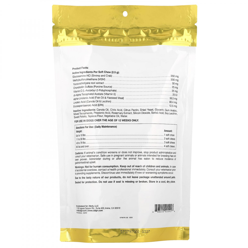 Добавка в мягких жевательных таблетках для бёдер и суставов собак California Gold Nutrition® Petсоздана для поддержки подвижности у собак. Эти жевательные таблетки помогают поддерживать подвижность у вашего пушистого члена семьи, поскольку содержат глюкозамин, хондроитин, МСМ и другие ключевые ингредиенты, способствующие общему здоровью суставов.