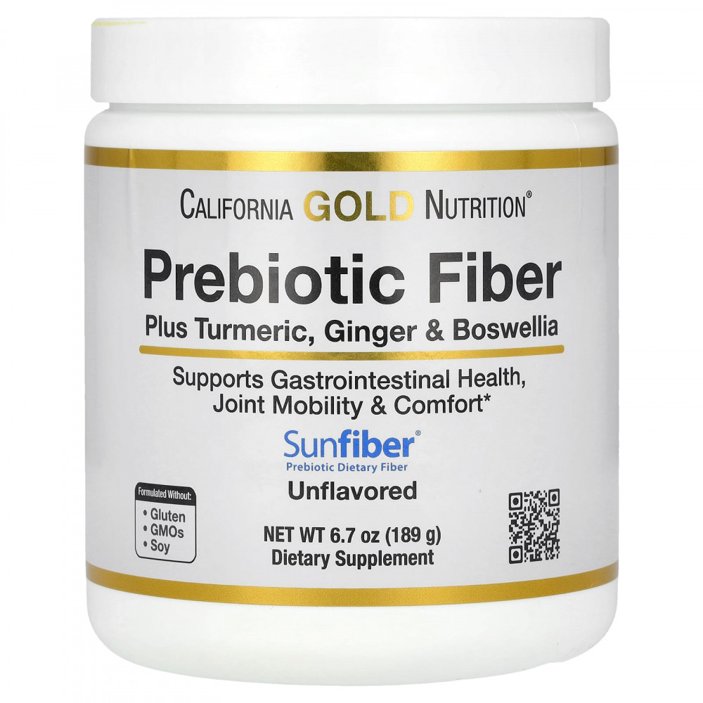Пребиотическая клетчатка — тип клетчатки, который способствует росту и активности полезных бактерий в пищеварительной системе. Хотя пребиотики можно найти в некоторых продуктах питания, добавление в свой рацион пребиотической клетчатки с куркумой, имбирем и босвеллией от California Gold Nutrition поможет получать достаточное ее количество и поддерживать здоровье желудочно-кишечного тракта, а также подвижность и комфорт суставов*.