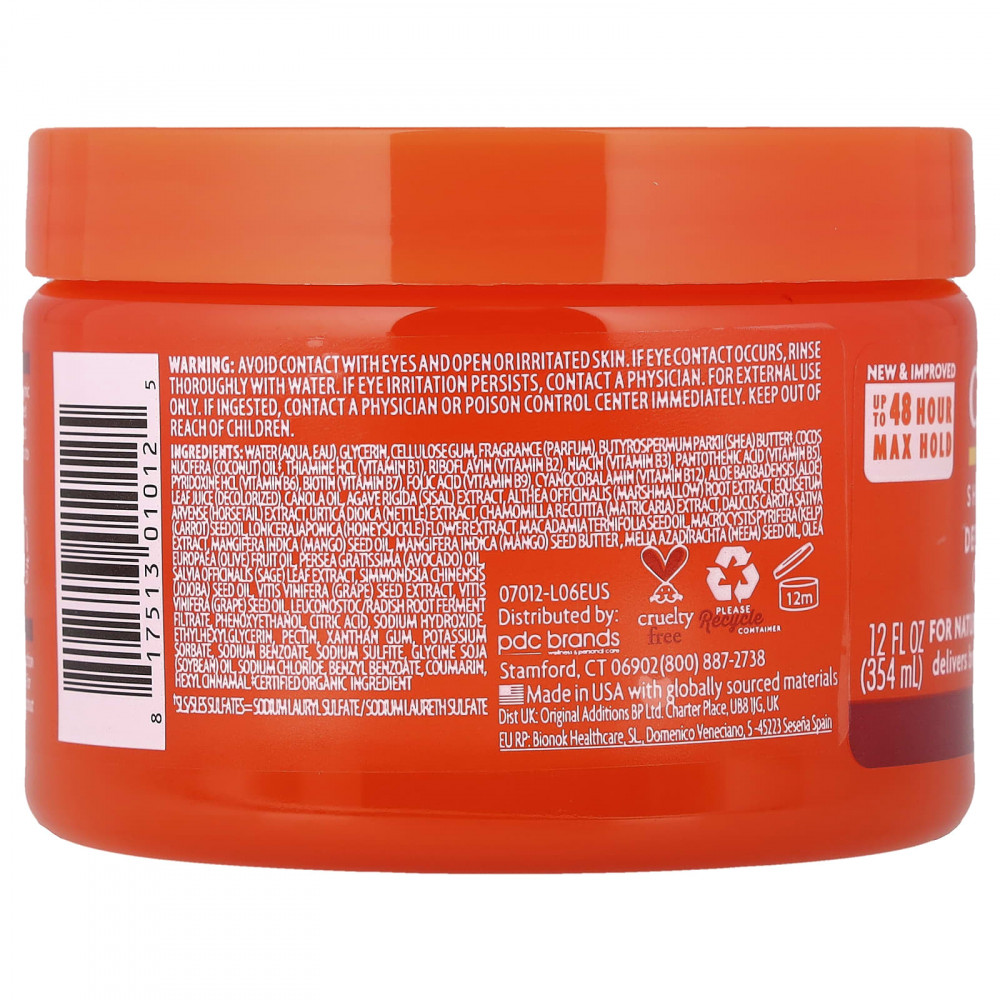 Содержит уникальную увлажняющую смесь из органического масла ши, закупленного по принципу справедливой торговли, органического кокосового масла, масла авокадо, масла косточек манго и масла виноградных косточек, которые увлажняют самые сухие локоны и придают им форму. Кроме того, он обогащен витаминами группы B, что способствует здоровому росту волос.