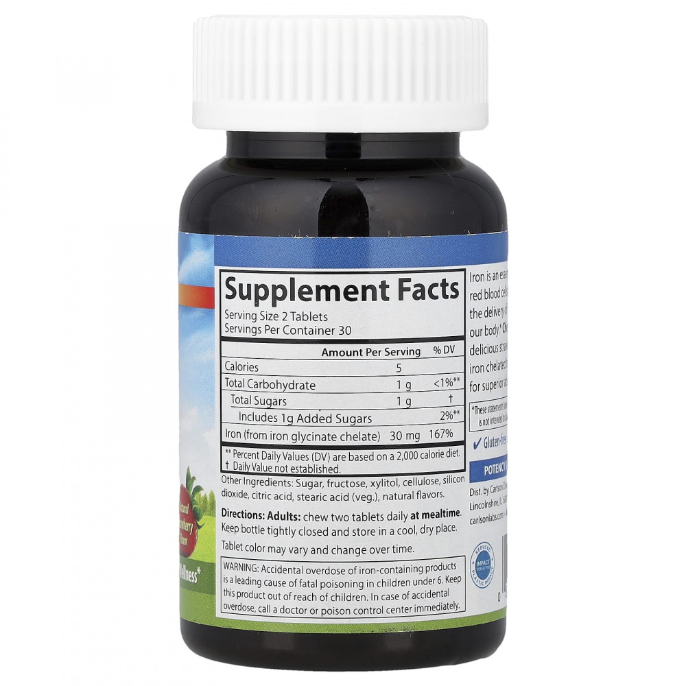 Железо — это незаменимый минерал, который содержится в эритроцитах и необходим для доставки кислорода к каждой клеточке нашего организма. Жевательное железо имеет восхитительный клубничный вкус и содержит железо, хелатное с аминокислотой глицином, что обеспечивает превосходное усвоение.