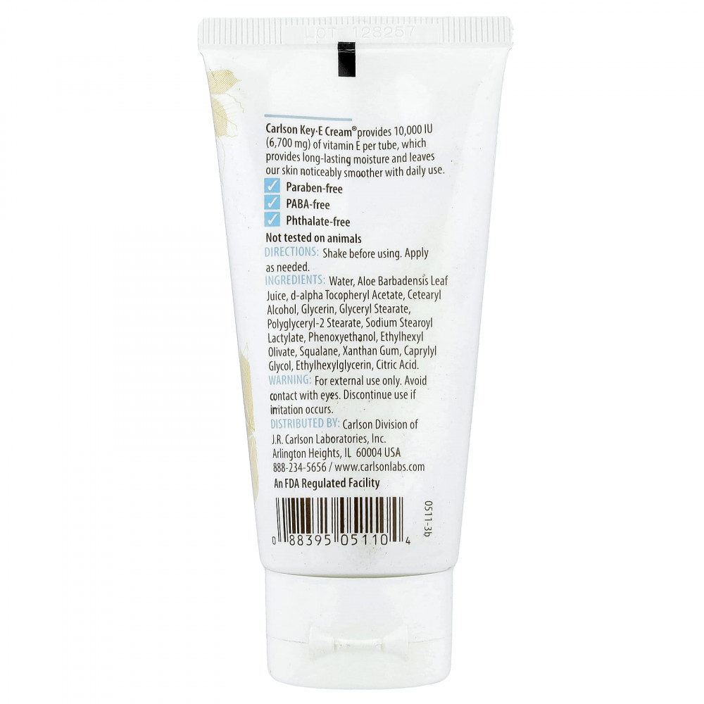 Крем Carlson Key-E Cream® содержит 10 000 МЕ (6700 мг) витамина E в каждой тюбике, что обеспечивает длительное увлажнение и делает нашу кожу заметно более гладкой при ежедневном использовании.