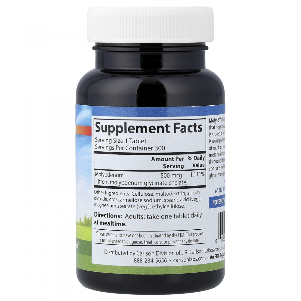 Moly-B™ (молибден) - это микроэлемент, который помогает усваивать жиры и белки и накапливается в печени, костях и почках. Это важный кофактор для активации нескольких ферментов, которые обеспечивают метаболизм и антиоксидантную защиту во всем организме. Carlson Moly-B™ содержит молибден в хелатной форме с глицином для оптимальной биодоступности.