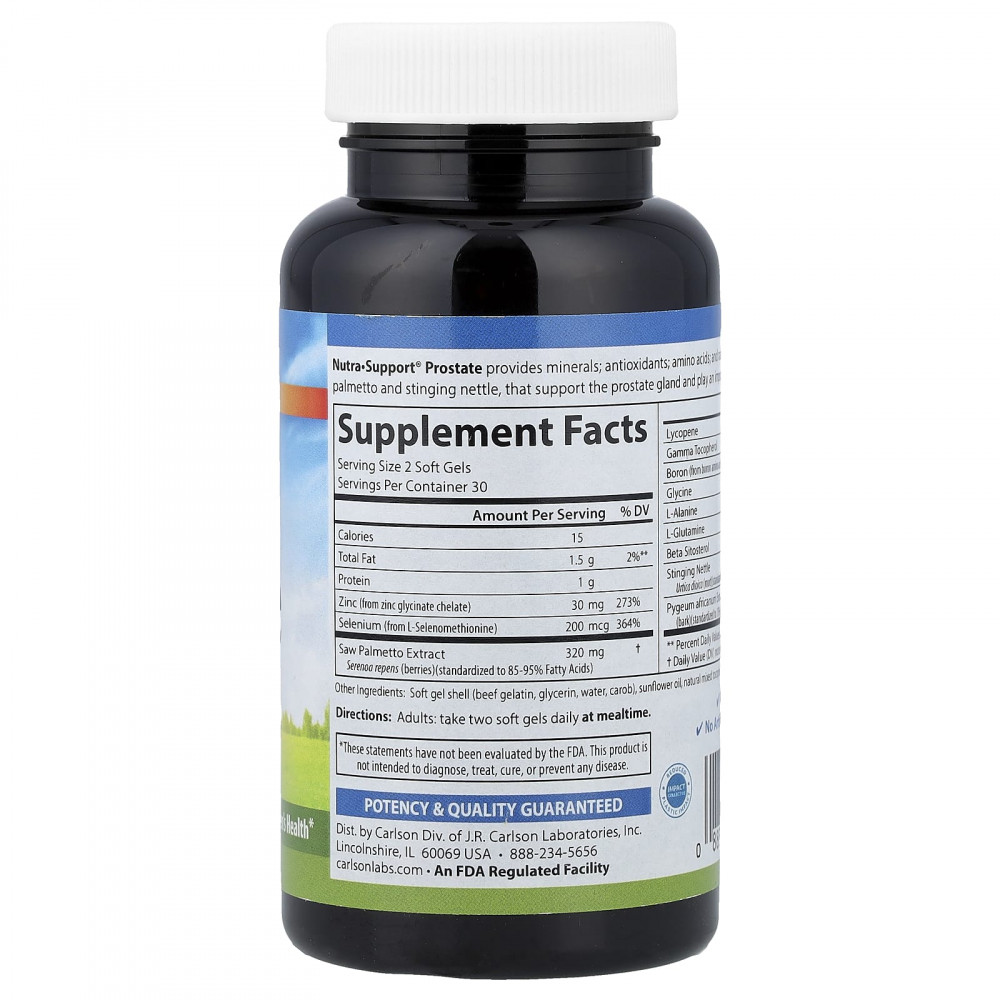 Nutra-Support® Prostate содержит минералы; антиоксиданты; аминокислоты; натуральные растительные экстракты, такие как сереноя и крапива двудомная, которые поддерживают работу предстательной железы и играют важную роль в здоровье простаты.