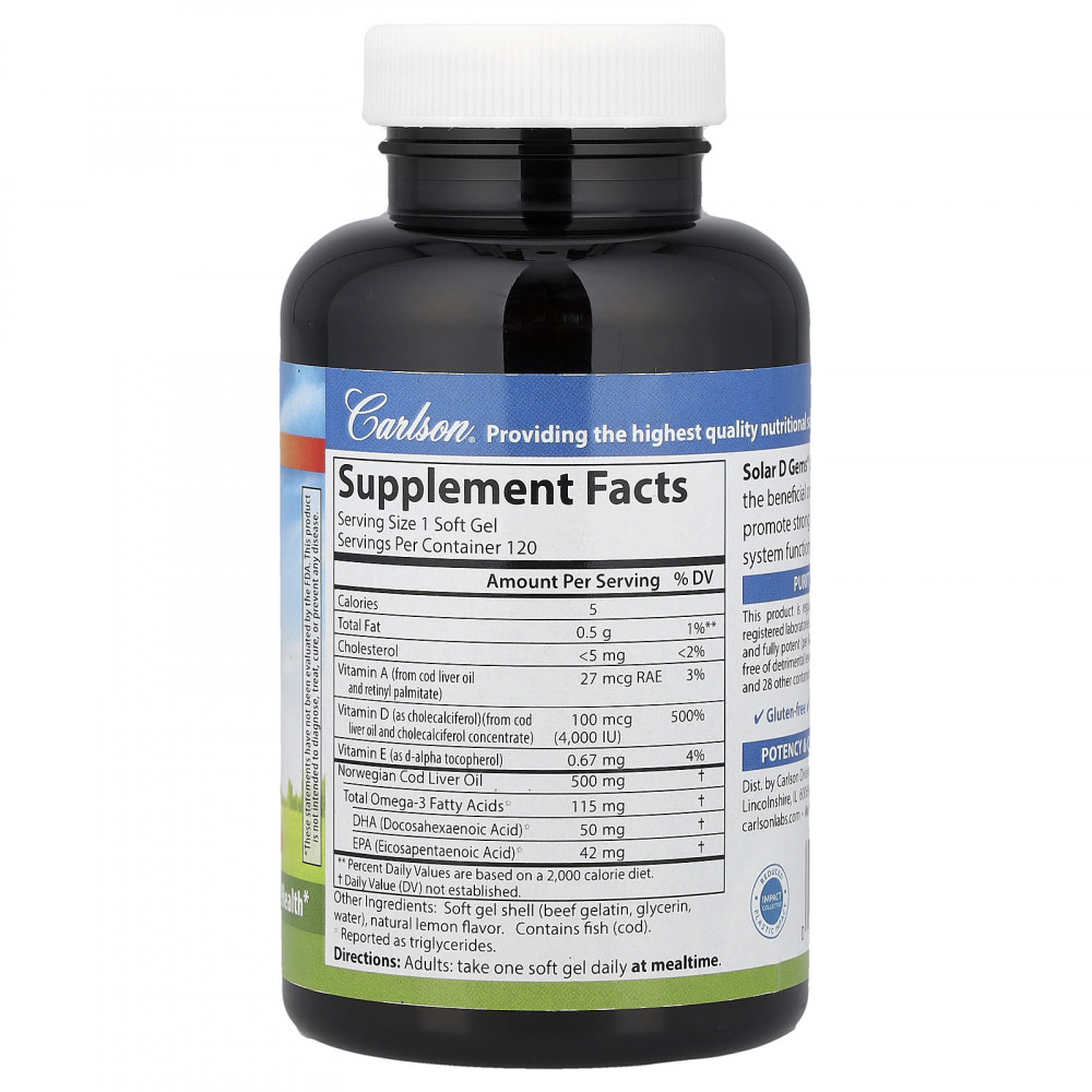 Solar D Gems® сочетает в себе витамин D3 с полезными омега-3 (ЭПК и ДГК) для укрепления костей, нормальной работы иммунной системы и здоровья сердца.