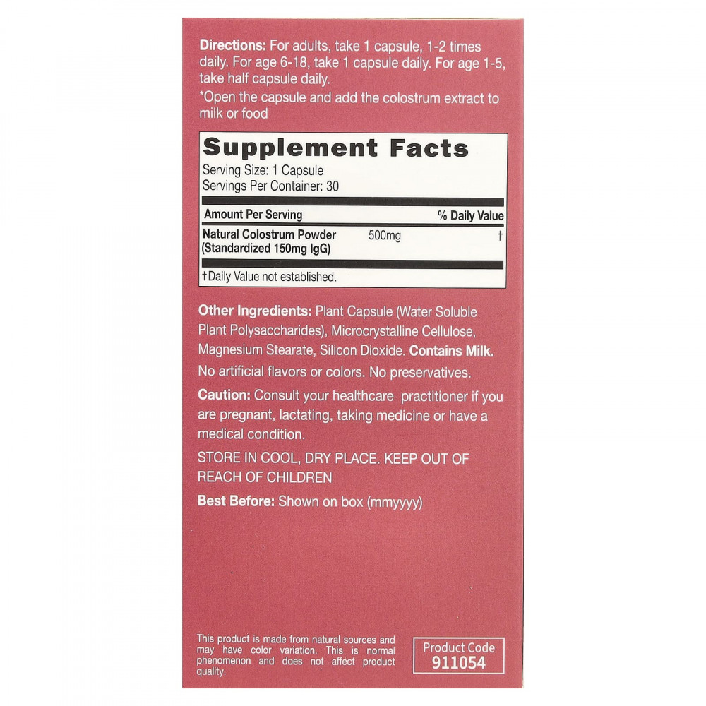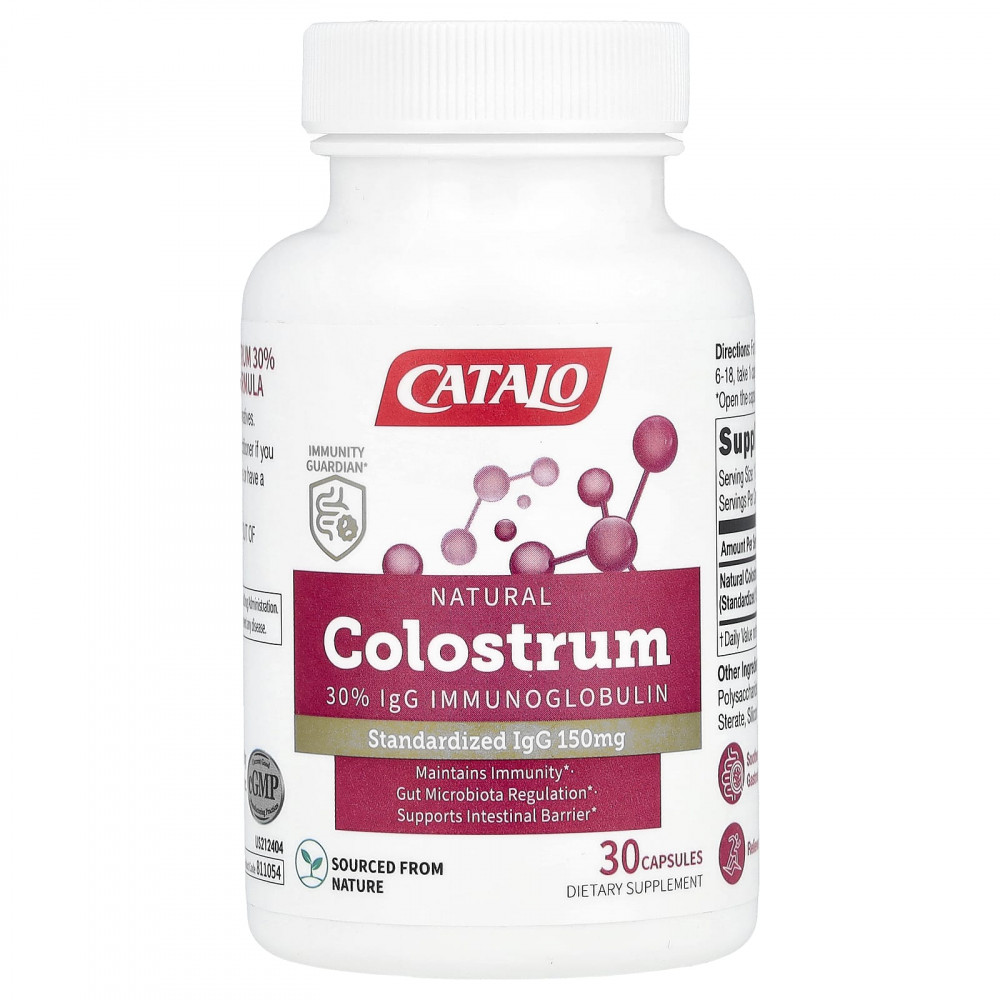 Натуральное молозиво CATALO с 30% иммуноглобулином IgG производится из незагрязненного молозива премиального качества, полученного от здоровых коров в течение 24 часов после отела в США. Его обрабатывают методами низкого давления и низкой температуры для получения экстракта молозива высокой концентрации с максимальной биологической активностью. Экстракт молозива богат пятью натуральными активными иммуноглобулинами: IgG, IgA, IgE, IgM и IgD, причем IgG являются наиболее распространенными. IgG в молозиве поддерживает иммунитет. Он также помогает справиться с распространенными желудочно-кишечными проблемами и аллергическими симптомами, борется с усталостью и слабостью. Каждая капсула содержит 500 мг экстракта молозива со стандартизированным содержанием IgG до 150 мг.