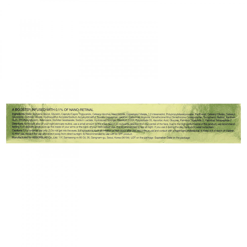 Вода, бутиленгликоль, глицерин, каприловый/каприновый триглицерид, цетеариловый спирт, никотинамид, диизостеарил малат, 1,2-гександиол, полипропилсилсесквиоксан, пантенол, цетеарил оливат, цетеариловый глюкозид, сорбитан оливат, гидроксиэтил акрилат/натрия акрилоилдиметилтаурата сополимер, лецитин, карбомер, аргинин, диметикон/винил диметикон кроссполимер, токоферол, ретиналь, ксантановая камедь, этилгексилглицерин, аденозин, сорбитан изостеарат, лактат натрия, гидролизованная губка, двунатриевая ЭДТК, полисорбат 20, аскорбиновая кислота, глюкоза, пальмитоил трипептид-1, пальмитоил тетрапептид-7.